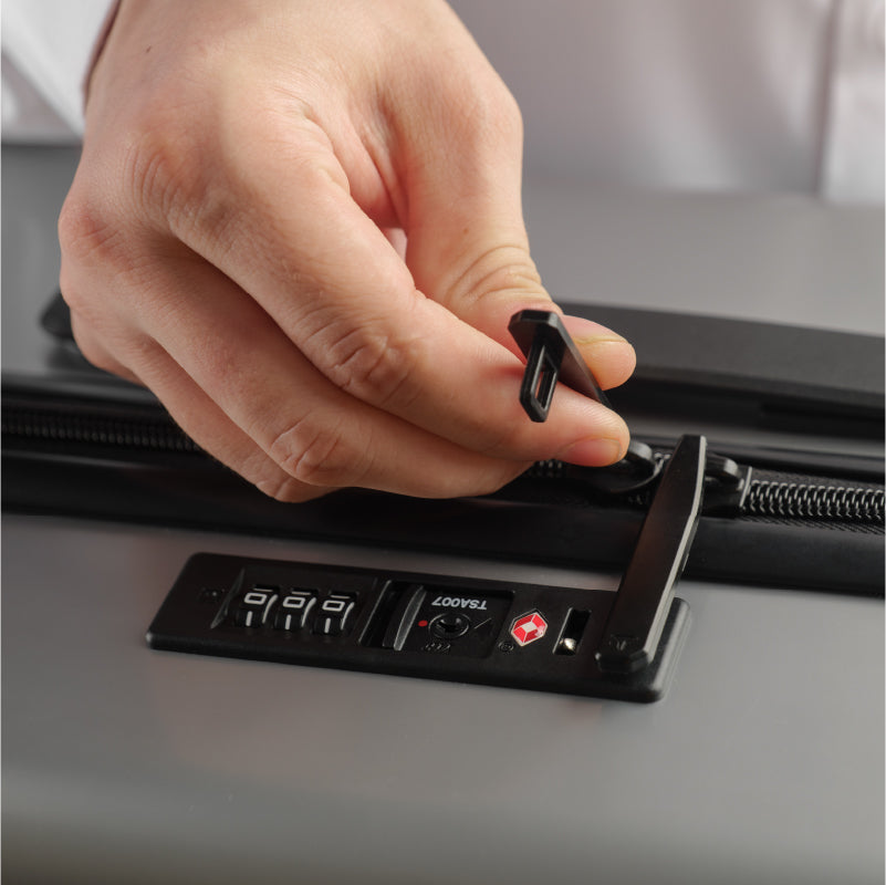 Our T7 backdoor opens with one click allowing you easy access to laptop, tablet, wash case, tech case, sunglass case and passport and secures with a TSA lock.